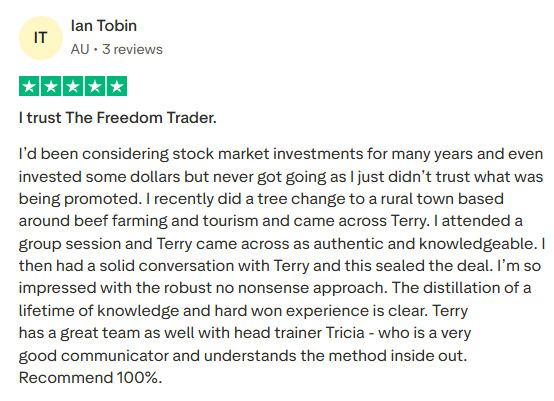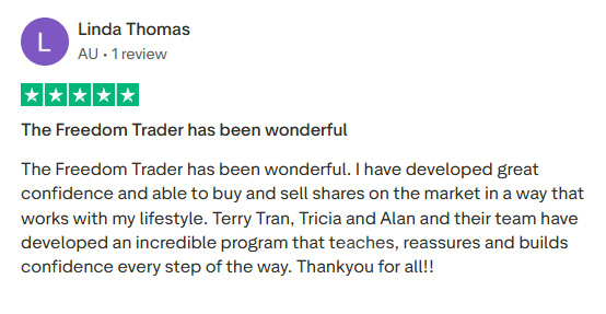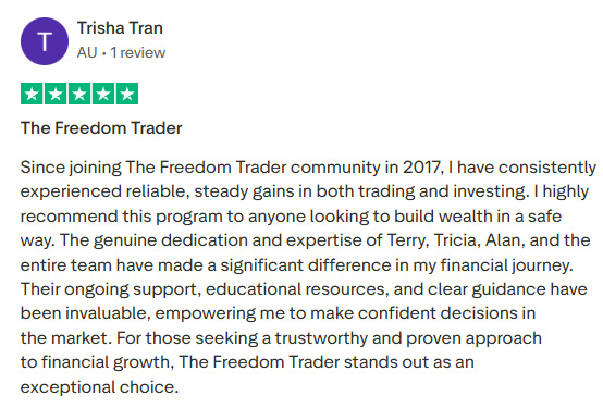 Effective Trading Solutions Pty Ltd t/as theFreedomTrader.com (ABN: 98 160 101 959) (“theFreedomTrader”) is an Australian Financial Services License Holder (AFSL # 543386). All material provided on this website is general advice only and does not take into consideration your personal objectives, financial situation or needs. You should seek independent financial advice and read the relevant disclosure statements prior to acquiring our services. TheFreedomTrader.com does not operate as a formal training provider and is not registered as a training provider.